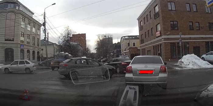 В центре Ульяновска столкнулись два автомобиля. Один из них отлетел на ограждение