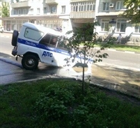 На перекрестке улиц Гончарова и Кузнецова, примерно в 8-30 провалилась передними колесами в промоину машина ДПС.