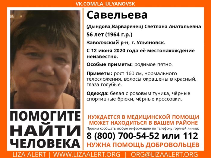 Вчера, 12 июня, ушла из дома в Заволжском районе Ульяновска и не вернулась Савельева Светлана Анатольевна.