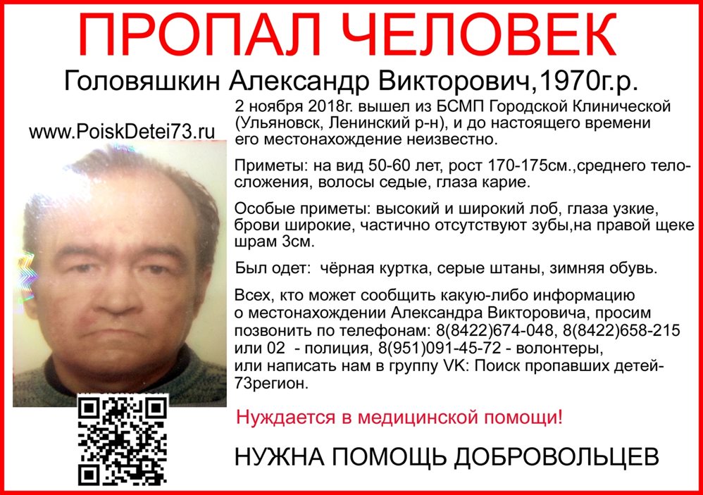 Всех, кто видел Александра Викторовича Головяшкина, или знает, где он находится, просят позвонить по телефонам: 8(8422)-674-048, 8(8422)-658-215, 8-951-091-45-72 (волонтеры), или 02 - в полицию.