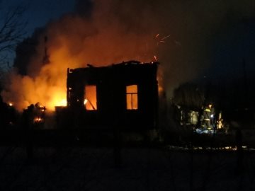 В 03:18 на улице Горной в селе Волостниковка загорелся частный дом. Жилое строение, а также сарай уничтожены огнём полностью.