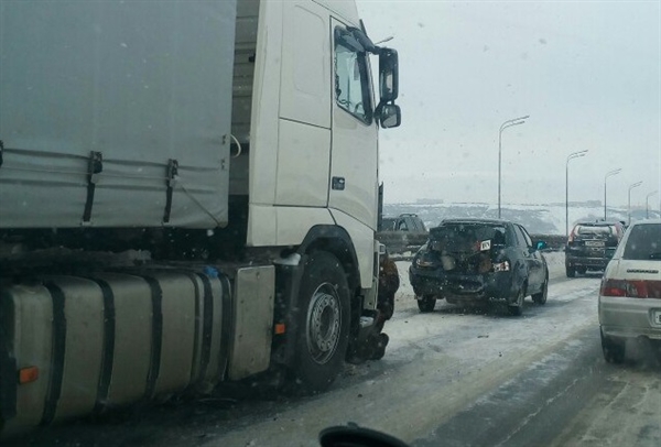 Как сообщают очевидцы, на Президентском мосту произошло ДТП: фура врезалась в «десятку». В результате аварии образовалась пробка.