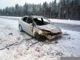 В машине выгорел моторный отсек. По каким причинам заполыхал «Рено-Дастер», предстоит выяснить специалистам.