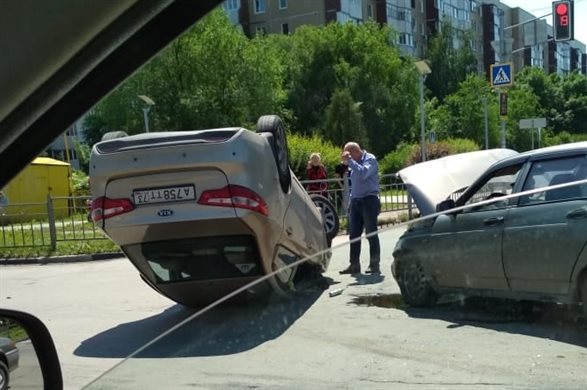 На пересечении улиц Камышинской и Рябикова столкнулись ВАЗ-2112 и иномарка, сообщают в социальных сетях. После удара один из автомобилей перевернулся.