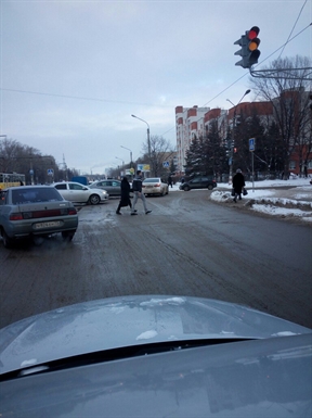 Сегодня, 28 декабря, на перекрёстке улиц Рябикова и Кузоватовской в Ульяновске произошло ДТП: столкнулись две иномарки.