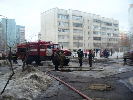 22 марта в восьмом часу утра на улице Тельмана в Ульяновске загорелся продуктовый магазин на первом этаже 5-этажного жилого дома площадью 50 кв.м.