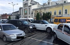 Возле ЦУМа в Ульяновске столкнулись четыре машины. На дороге пробка