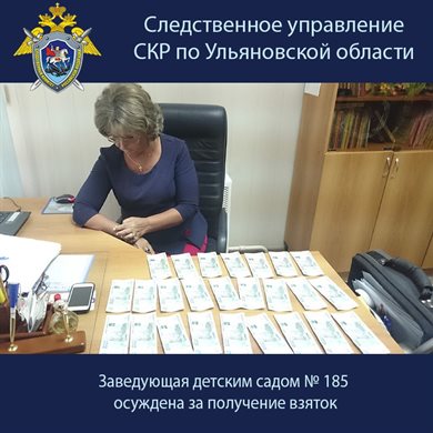 - Всего установлено 11 эпизодов преступной деятельности осужденной. Собранные следственными органами Следственного комитета Российской Федерации по Ульяновской области доказательства признаны судом достаточными для вынесения приговора 63-летней заведующей муниципальным бюджетным дошкольным образовательным учреждением «Детский сад № 185». Она признана виновной в получении должностным лицом взятки и мелком взяточничестве.
