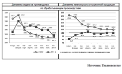 В структуре производства промышленной продукции ведущее место принадлежит обрабатывающим производствам. За восемь месяцев 2013 года индекс промышленного производства по обрабатывающим видам деятельности по сравнению с соответствующим периодом прошлого года составил 103,4 процента. Несмотря на то, что индексы обрабатывающих производств в текущем году выше аналогичных индексов, сложившихся в 2012 году (за исключением января и февраля), этот рост - замедляющийся: в I квартале 2013 г. выпуск продукции увеличился на 7,1%, за полугодие - на 5,9%, за восемь месяцев - на 3,4%.