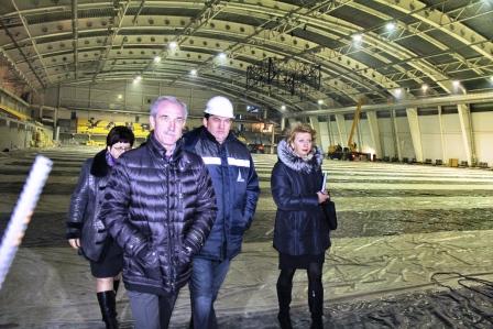 Работы на объекте идут круглосуточно. Заканчиваются инженерные подключения, в разгаре - внутренняя отделка, смонтированы трибуны и установлены почти все сидячие кресла, смонтирован каркас над центральным входом для установки большого экрана (заработает 15 декабря), практически готово к заморозке поле - не сегодня-завтра будет залит этиленгликоль, а с 15 декабря начнется наморозка льда. Полностью комплекс будет готов в феврале, торжественное открытие состоится в начале марта. По словам технического директора генподрядчика ООО «Свияжская строительная компания» Азата Насибулова, задержка, по сравнению с первоначальными сроками, вызвана изменением параметров льда: «Уже после начала строительства Федерация хоккея с мячом России установила новые размеры - 60 на 108 метров, в связи с чем пришлось менять систему подведения некоторых коммуникаций».