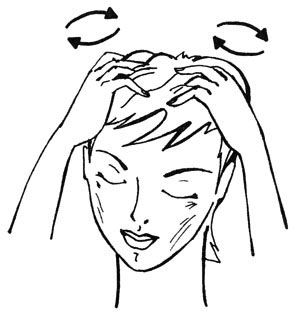 Массаж головы следует начинать с лёгких движений, разогревающих кожу. Затем надавливания должны постепенно усиливаться. Заканчивать массаж нужно нежными поглаживаниями волос. Очень важно удобное, расслабленное положение тела и головы во время массажа.