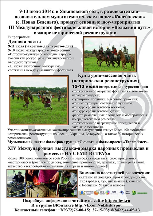 Так, 9-11 июля в рамках фестиваля будут организованы научно-исследовательские мероприятия: планируется серии археологических обследований важнейших средневековых торгово-ремесленных центров Ульяновского Поволжья.