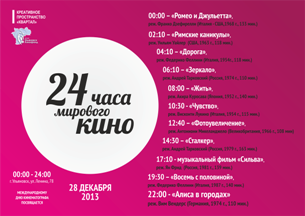 «В афишу проекта попали фильмы, которые носят марку «обязательны к просмотру». Это классика международного кинематографа. За сутки будут представлены картины Италии, России, Германии, Великобритании, Испании, США и Японии», - отмечает руководитель Креативного пространства «Квартал» Павел Андреев.