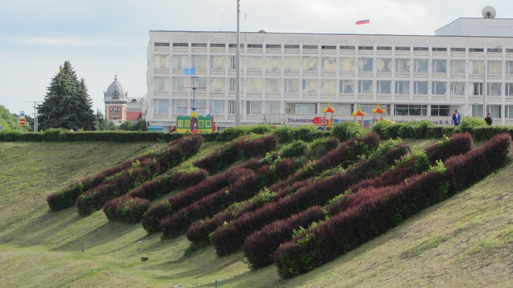 Осенью склон хорошо просматривался с теплоходов. И была даже идея, чтобы теплоходы, проходя мимо Ульяновска, давали гудок напротив слова «Ленин», но она не прошла.