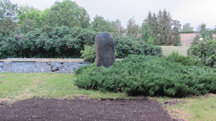 Далее шёл участок Грузии. На тёмном камне до сих пор исполненные графикой вьются стилизованные растения. Когда-то всё это ещё украшали цветники.