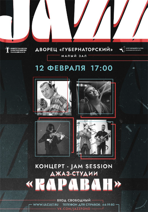 В субботу в 18.00 в музее балалайки (ул.Бебеля, 19) и в воскресенье в 17.00 в малом зале «Губернаторского» дает концерты студия джаза «Караван» (6+). Они посвящены легендарному Уиллису Кларку Коноверу - радиоведущему джазовых программ и пройдут в формате джейм- сейшн. Коллектив исполнит блюзы, баллады, латинские мелодии, импровизации на известные ретро-мелодии нашей страны.