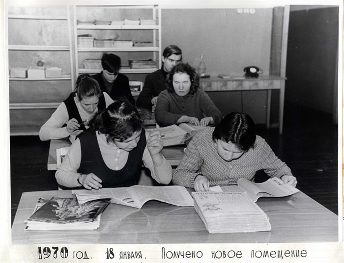 Читальный зал библиотеки, прослушивание «говорящих» книг. 1962