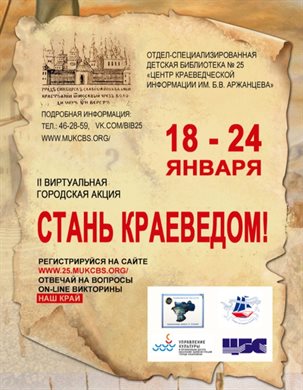 Вторая виртуальная городская акция «Стань краеведом» пройдет с 18 по 24 января в рамках VI Недели краеведческой книги. Её участниками могут стать юные ульяновцы в возрасте от 7 до 18 лет.