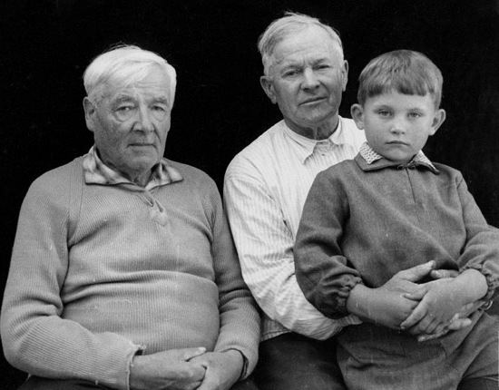 Д.И. Архангельский и А.А. Пластов с внуком Колей. 1962. Прислониха