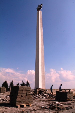 Возвращаясь к террасированию склона, скажем, что дело это весьма дорогостоящее. Один только проект, по самым скромным прикидкам, обойдется, как минимум, в 300 - 400 тысяч рублей. Но, как сказал Сергей Морозов, берег здесь все равно необходимо укреплять - за 40 лет многотонная 47-метровая стела оказала на него изрядное давление, а значит, необходимо сделать все по максимуму. Пусть через год, через два, но завершить мемориальный комплекс так, чтобы он максимально долго напоминал о воинской славе российского оружия.