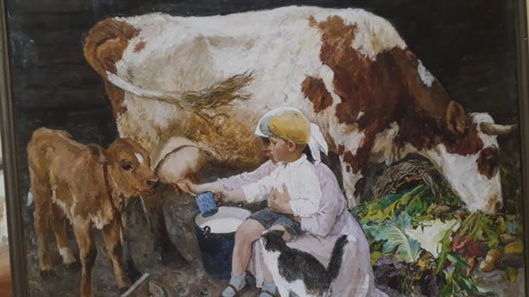 Конечно, потом что-то закрашивалось, но какие-то детские мазочки где-то и остались, в том числе и в работе «Кружечка молока», которая сейчас находится на выставке в пластовском музее. Николай Николаевич говорит, что помнит, как на этом полотне рисовал капусту, но никаких умилений по поводу того, что он сделал, не было: только строгий разбор нарисованного.