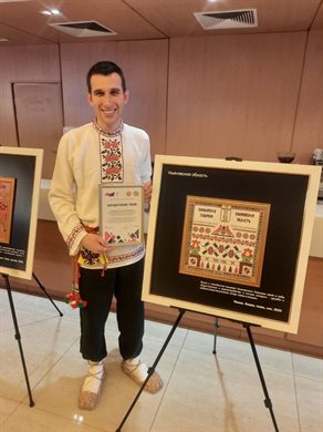 Ульяновскую область представил заведующий отделом маркетинга и просветительной деятельности Ульяновского краеведческого музея Сергей Кольцов. В своей работе он использовал этнографические сочетания цветов, вышитый орнамент, который отражает корни и особенности края, и, конечно, изобразил Волгу.