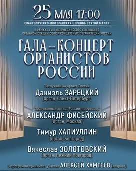 25 мая в Евангелическо-лютеранской церкви Святой Марии большим гала-концертом органистов России завершится сезон концертов органной музыки (6+).