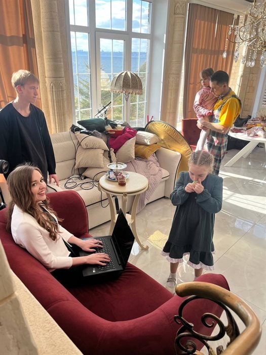 «Преподаватели «Останкино» посоветовали нам снимать как можно больше. Поэтому, пока работа над фильмом «Бублик не собака» приостановилась, я решила заняться короткометражкой «Маленький дизайнер». Это история о том, как важна поддержка родителей для ребёнка. Главные роли мамы и папы сыграли я и мой муж Алексей. Роль дочки исполнила начинающая актриса София Блинова, которая также играет главную роль в фильме «Бублик не собака», – пояснила Леонтьева.