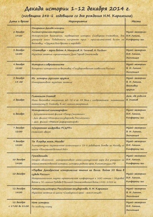 В конференц-зале Ленинского мемориала в Ульяновске 2 декабря в 12.30 состоится открытие Декады истории, посвящённой 248–летию со дня рождения Николая Михайловича Карамзина.