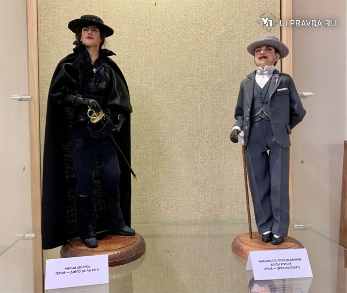 Другая часть выставки представлена декоративными куклами Ольги Толстихиной. Это узнаваемые герои любимых фильмов: «Тихий Дон», «Унесенные ветром», «Пуаро Агаты Кристи», «А.Пушкин», «Карнавальная ночь», «В бой идут одни старики» и др. Персонажа легко узнать не только по портретному сходству и костюму, художнице удалось передать мимику, позу и жесты киногероя.
