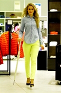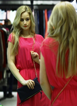 Что касается кроя, предпочтение отдается свободным и простым формам, без рюшей и оборочек. Отличный вариант для Екатерины – джинсовая рубашка, которую следует носить расстегнутой на верхние пуговицы в сочетании с брюками сочного цвета. Если это платье, то не обтягивающее, средней длины. Талию можно подчеркнуть с помощью с вытачек на платье или ремешком.