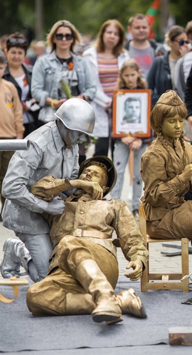 «Для меня 9 Мая - сокровенный праздник, так как мой дедушка воевал, и я буквально выросла на его рассказах. Память с каждым днем становится все прозрачнее, а тех, кто жил, видел и знал - все меньше. Лишь памятники шепчут свою исповедь. Но у них, к сожалению, нет эмоций. Многие смотрят на монументы как на произведение искусства, а не как на судьбу человека. В нашем спектакле скульптуры оживают и рассказывают истории. У каждого она своя, но вместе они складываются в одну — в историю про путь к Победе», – объяснила Бузук.