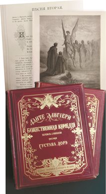 В Карамзинскую общественную библиотеку наш земляк, поэт-сатирик некрасовской плеяды Дмитрий Дмитриевич Минаев передал более восьмидесяти книг, в том числе три тома «Божественной комедии», выпущенных известнейшим (середина XIX - начало XX века) петербургским издателем Маврикием Осиповичем Вольфом. Издание было прекрасно оформлено и стало шедевром книгопечатания в России второй половины XIX века. Для «Божественной комедии» Вольф выбрал стильную слоновую бумагу. Книга напечатана шрифтом эльзевир, который был разработан по личной инициативе «царя русской книги» (так называл М.О. Вольфа Н.С. Лесков) и использовался для набора художественной литературы. Для оформления переплета и титульного листа применялись декоративные, специально разработанные шрифты. В начале каждой песни в тонком растительном орнаменте расположена буквица (инициал). Над иллюстрированием книги работали лучшие мастера-графики Европы третьей четверти XIX века: Франсуа Паннемакер, Луи Дюмон и другие. В издание также включены гравюры (91 илл.) всемирно известного художника Густава Доре, у которого Вольф купил право публикации с подлинников.