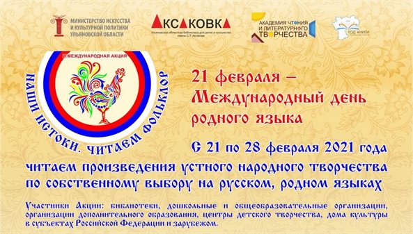 В Год книги в Ульяновской области, объявленный губернатором Сергеем Морозовым, подготовлена насыщенная тематическая программа. Она включает в себя как новые события, так и те, которые уже хорошо себя зарекомендовали. Международная акция «Наши истоки. Читаем фольклор» традиционно приурочена ко Дню родного языка, который отмечается 21 февраля. Её инициатором выступает Аксаковская библиотека, и на сегодняшний момент уже подано более 160 заявок на участие. В библиотеках Барышского, Карсунского, Майнского, Сенгилеевского, Ульяновского, Чердаклинского районов, а также Ульяновска, Димитровграда и Новоульяновска запланировано более 200 мероприятий. Дети и взрослые посетят праздник «Слов русских золотая россыпь», часы фольклора «Сказки народов Поволжья» и «В сказочном царстве, в загадочном государстве», театрализованные представления, фестиваль семейных самодеятельных детских театров «В мире сказок».