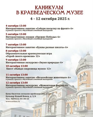 Отметим, что занятия в музее проводятся по предварительной записи по телефону: 8 (8422) 44-30-53.