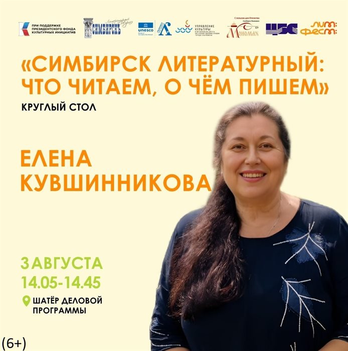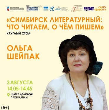Круглый стол «Симбирск литературный: что читаем, о чём пишем» будет организован 3 августа с 14:05 до 14:50. Место – деловой шатёр дирекции «Ульяновск — литературный город ЮНЕСКО», бульвар Новый Венец.