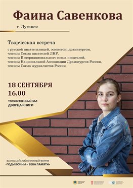 18 сентября в 13.00 Дворец книги ждет на творческую встречу с молодой русской писательницей, эссеистом, драматургом Фаиной Савенковой.