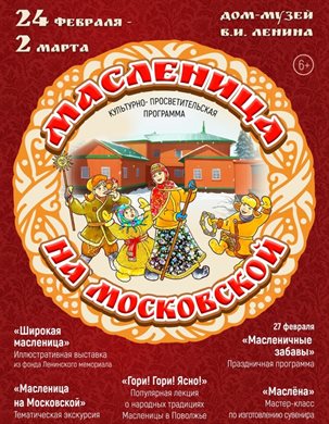 Гостей музея ждут тематическая экскурсия, иллюстрированная выставка из фондов Ленинского мемориала, праздничная программа «Масленичные забавы», лекция о народных традициях этого праздника в Поволжье и мастер-класс по сувенирам. (6+)