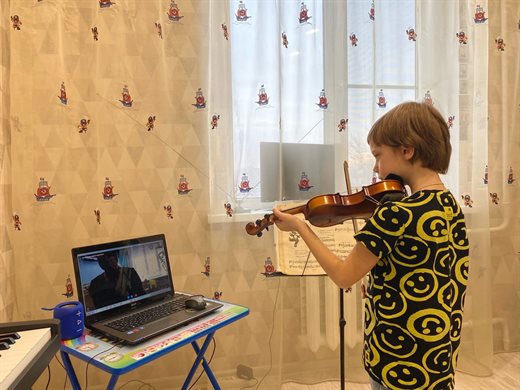 Занятия в дистанционном формате проводит и детская школа искусств № 12 имени А.В. Варламова. Воспитанник класса скрипки шестилетий Иван Гришин связывается с преподавателем Галиной Велигжаниной через скайп. Как утверждает мама мальчика Анна Гришина, школой созданы все условия, необходимые для проведения заочных уроков.