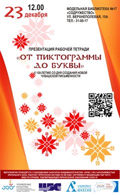23 декабря в 12:00 в модельной библиотеке № 17 «Содружество» (город Ульяновск, улица Верхнеполевая, дом 15а) состоится презентация рабочей тетради «От пиктограммы до буквы», которая посвящена 150-летию создания новой чувашской письменности.