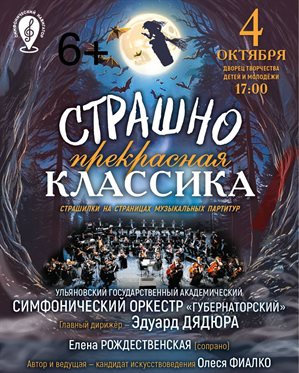 «Антологию музыкальных страшилок в программе «Страшно прекрасная классика» представят симфонический оркестр «Губернаторский» под управлением главного дирижёра Эдуарда Дядюры. В программе примет участие солистка филармонии Елена Рождественская (сопрано). Ведущая – кандидат искусствоведения Олеся Фиалко. В программе – три версии шабаша нечистых сил, созданные Эдвардом Григом, Гектором Берлиозом и Модестом Мусоргским. Мы сравним подходы трёх композиторов и проголосуем, кто из них достоин приза за лучшее воплощение картины слёта нечисти», – сообщили в филармонии.