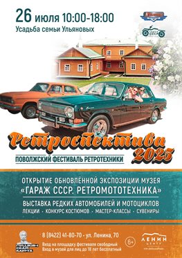 Торжественное открытие новой экспозиции музея «Гараж СССР. Ретромототехника» состоится 26 июля на территории городской усадьбы семьи Ульяновых, в Доме-музее В. И. Ленина (адрес: улица Ленина, дом 70).