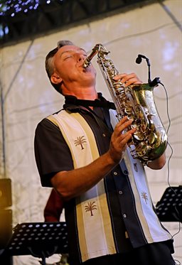 Алексей играет на саксофоне и кларнете, поёт и как никто заводит публику.