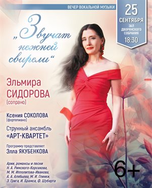25 сентября сольную программу «Звучат нежные свирели» (6+) представит солистка филармонии, лауреат международного конкурса Эльмира Сидорова.