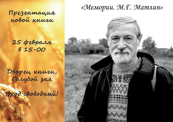 25 февраля в 15:00 в Голубом зале Ульяновской областной научной библиотеки состоится презентация новой книги – «Мемории. М. Г. Матлин».