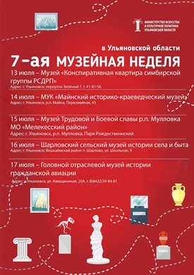 14 июля с 09:00 до 17:00 сотрудники Майнского историко-краеведческого музея организуют экскурсию по выставке «Старый дом, давно влюблённый в юность», а также обзорную по учреждению культуры. В парке районного Дома культуры в 11:00 состоится краеведческая беседа «Художник из Комаровки».
