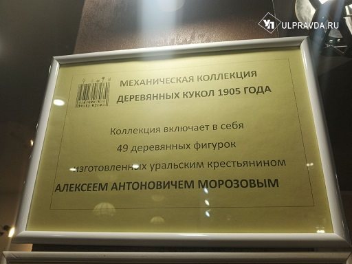 Удивительные деревянные фигурки, живущие своей жизнью, помнит каждый, кто хотя бы раз был в Ульяновском театре кукол. 49 маленьких человечков – крестьян, мастеров, ремесленников - заняты своими делами: кто метёт двор, кто чинит сапог, кто рубит капусту… Вот уже 120 лет мастерски выполненная коллекция удивляет и радует зрителей. Изготовил её еще в начале прошлого века талантливый крестьянин Алексей Морозов. Каждую фигурку он собственноручно вырезал из дерева, расписал, продумал механизм её «оживления». Тут тебе и искусство художника, и мастерство ремесленника, и гений технической мысли!