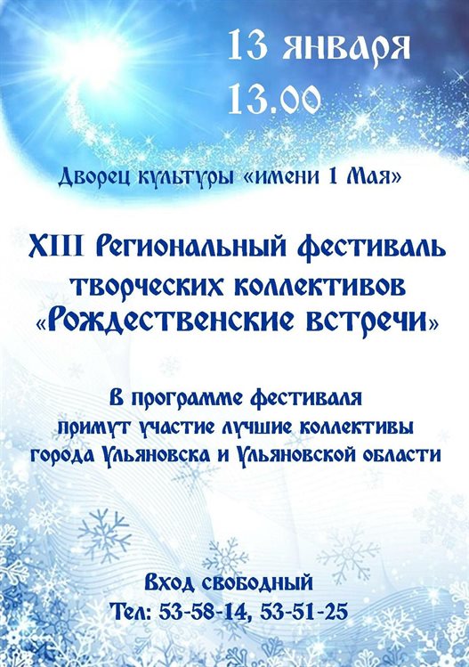 13 января в 13:00 во Дворце культуры имени 1 Мая пройдёт ставший уже традиционным региональный фестиваль.