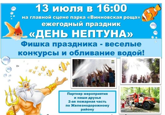 Праздник пройдет 13 июля в 16:00 в Винновской роще. Парк готовит игровую программу с конкурсами, концертные номера и море водных развлечений (0+).