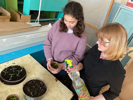 – В 2019 году мы с ребятами участвовали в проекте «Клумба Победы» и с тех пор каждый год сажаем на этой клумбе цветы. Поэтому на цветы у нас тоже есть планы. Рассада подрастает.